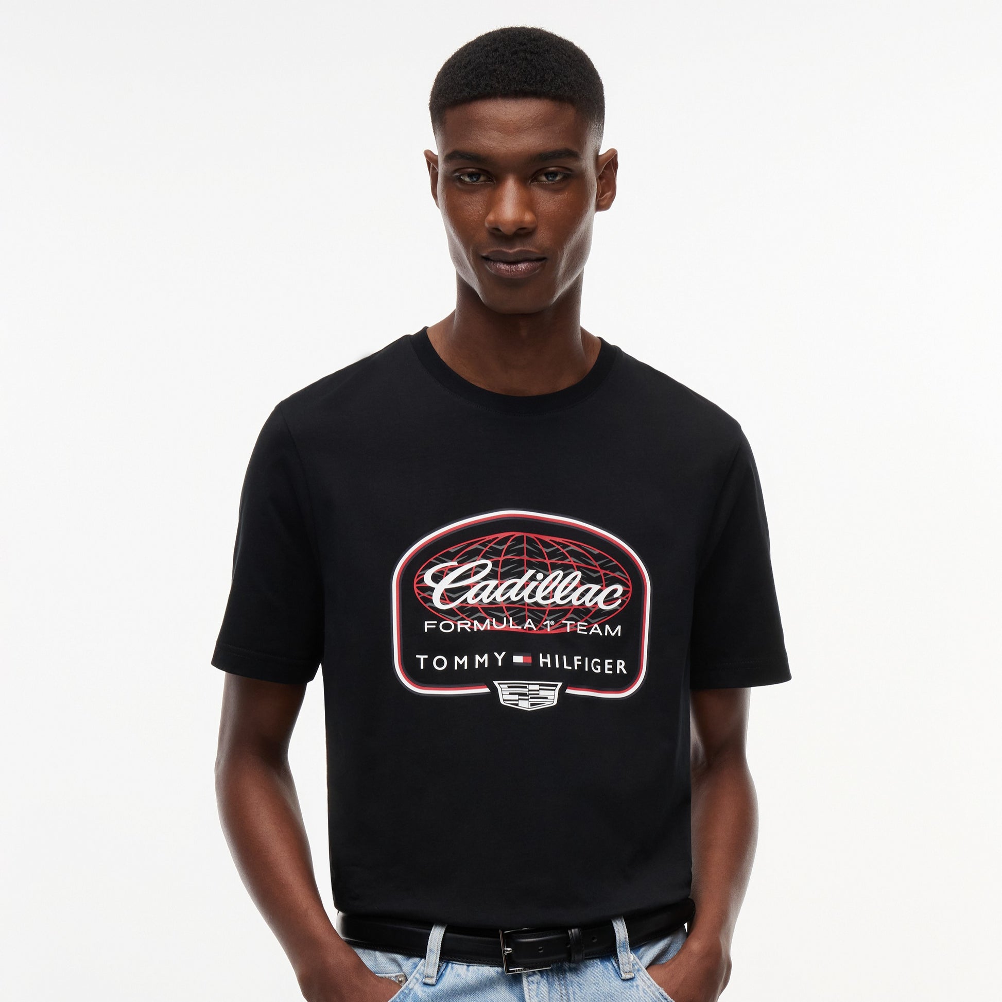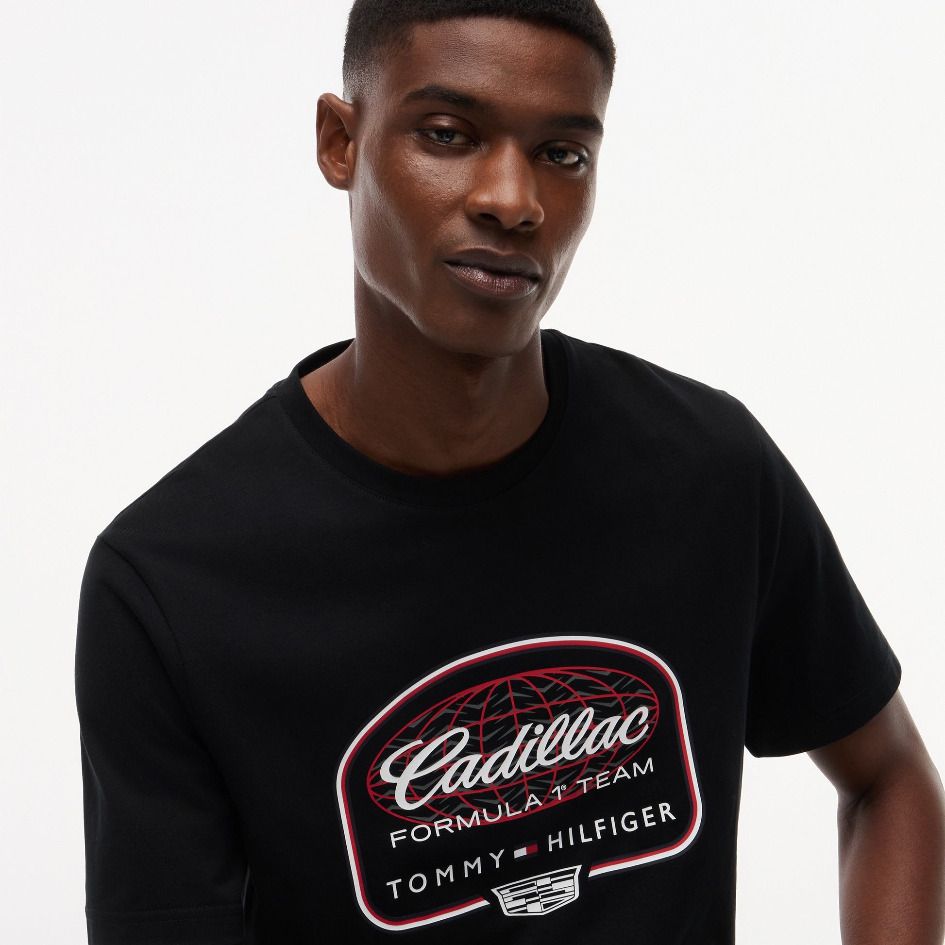Show your racing passion with the Cadillac F1 x Tommy Hilfiger Graphic Tee for Men in sleek black. This premium men’s T‑shirt blends bold American motorsport‑inspired graphics with iconic Tommy Hilfiger x Cadillac Formula 1 Team branding for standout casual style.