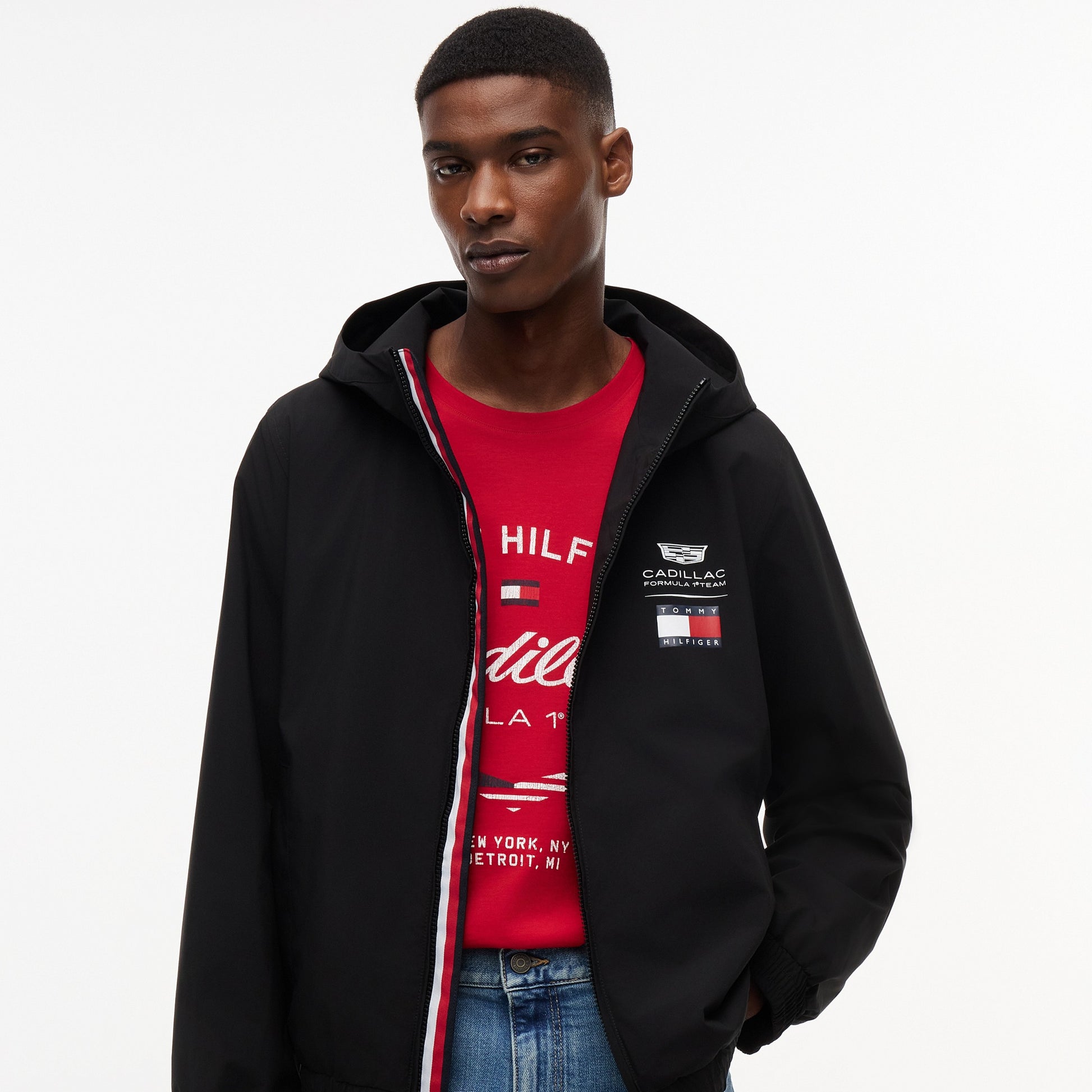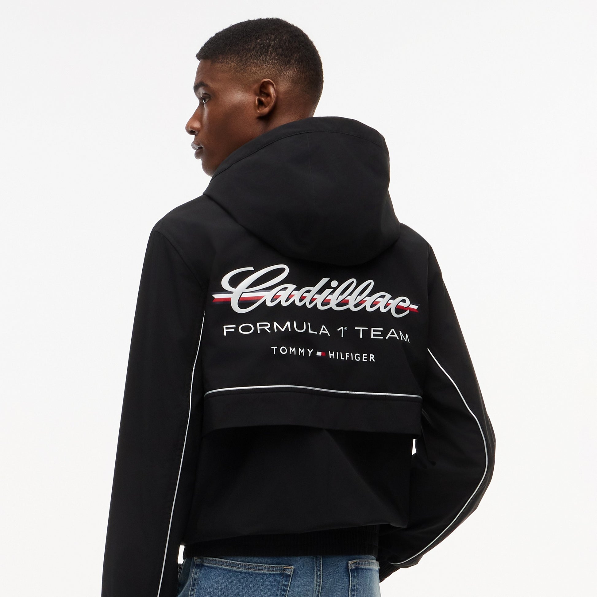 Crafted from lightweight, wind‑resistant fabric with a full‑zip front and relaxed fit, it delivers practical protection and effortless style. Featuring bold Tommy Hilfiger x Cadillac Formula 1 Team branding, it’s perfect for race weekends, travel or everyday wear.