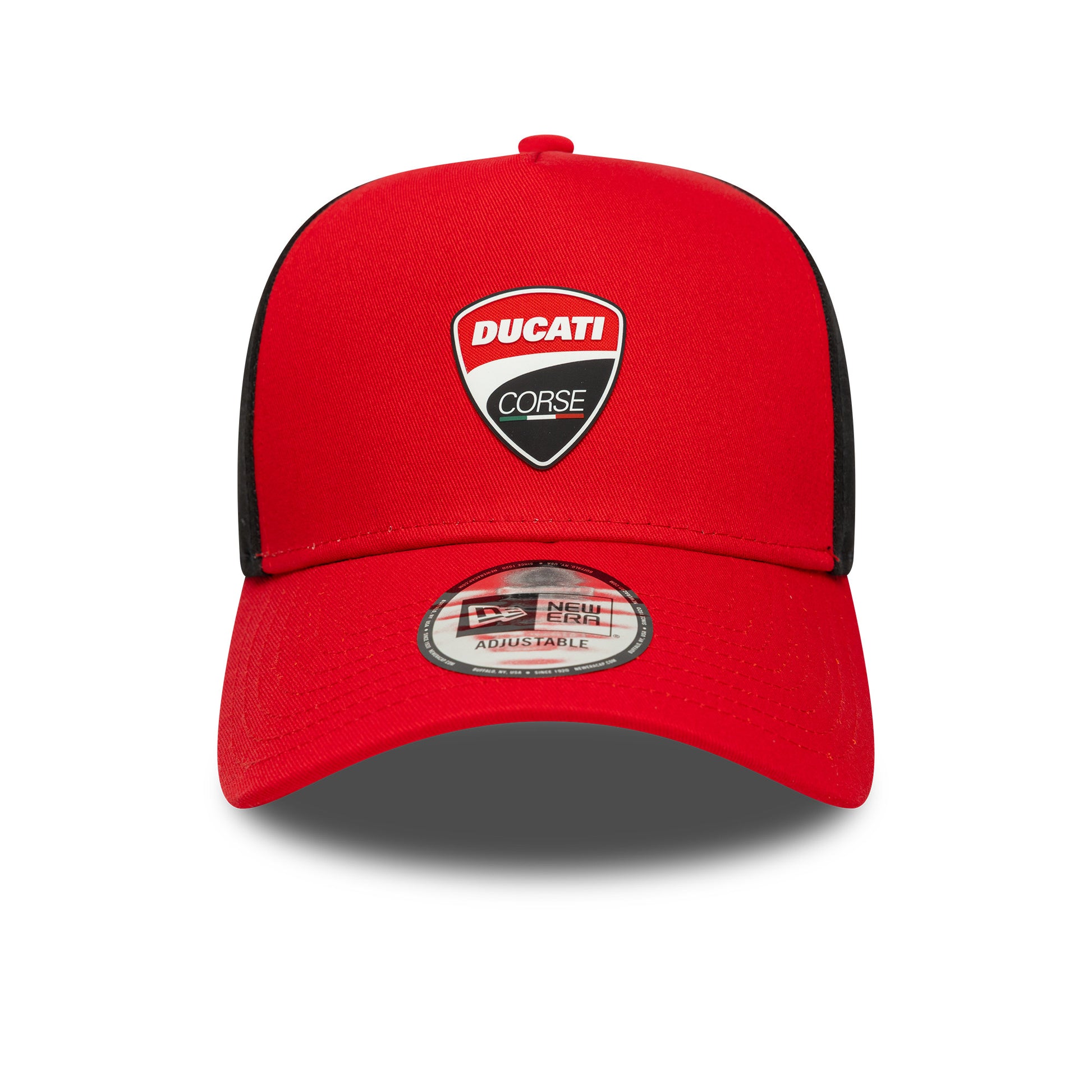 The Ducati Corse Logo Red 9Forty E-Frame Trucker Adjustable Cap combines motorsport style with everyday comfort.