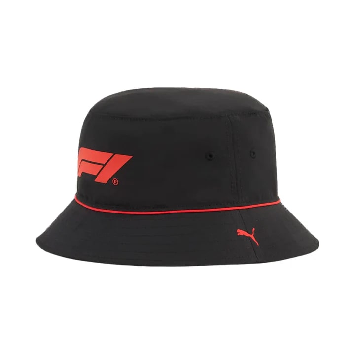 Official F1 logo bucket hat for the Formula One enthusiast. F1 logo and Puma cat with contrast piping detail.