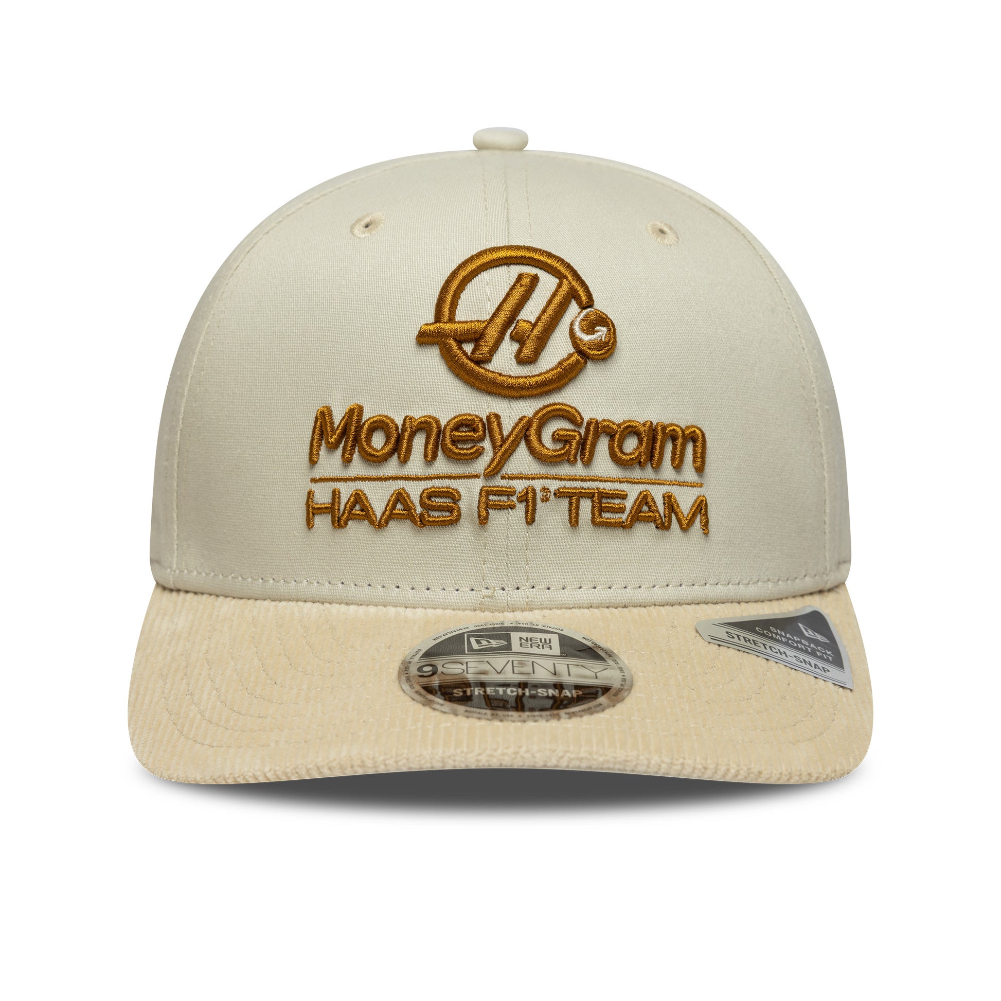 The Haas F1 Cord 9Seventy Cap Stretch Snap Adults - Stone combines modern Formula 1 style with a premium corduroy finish.