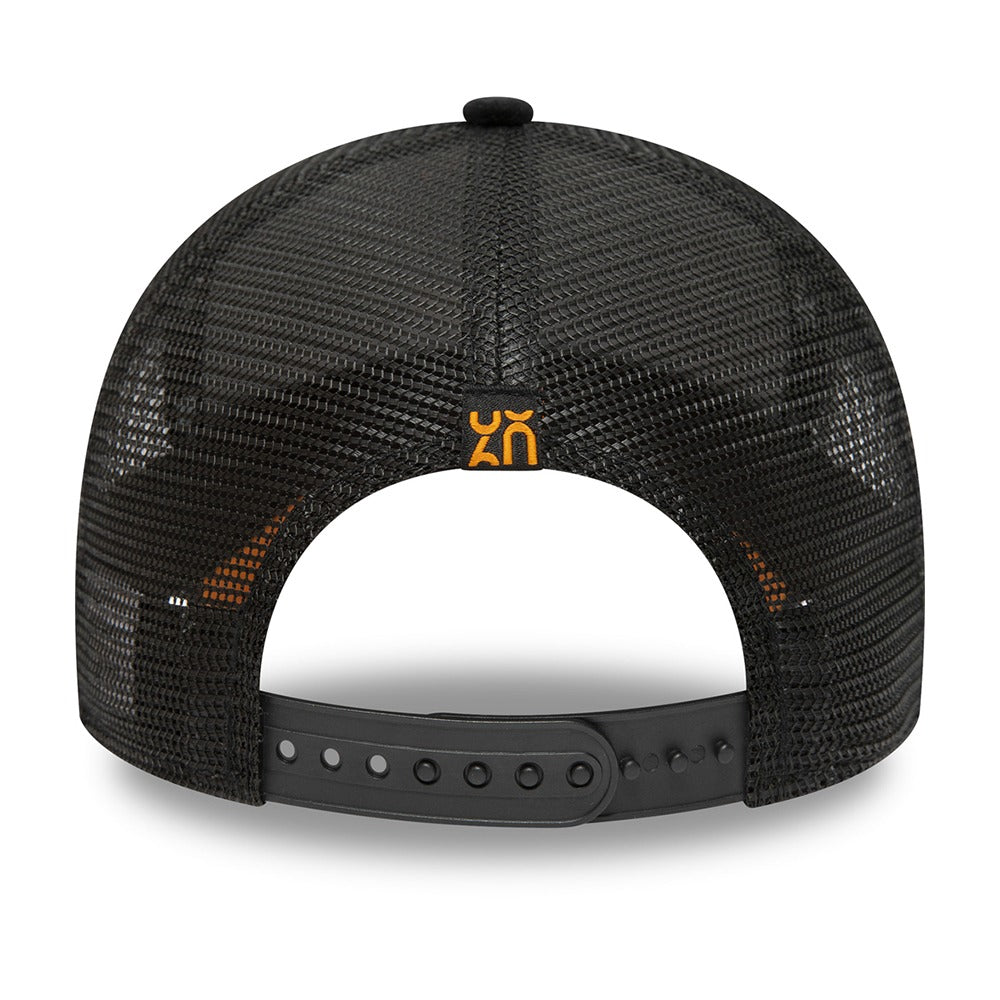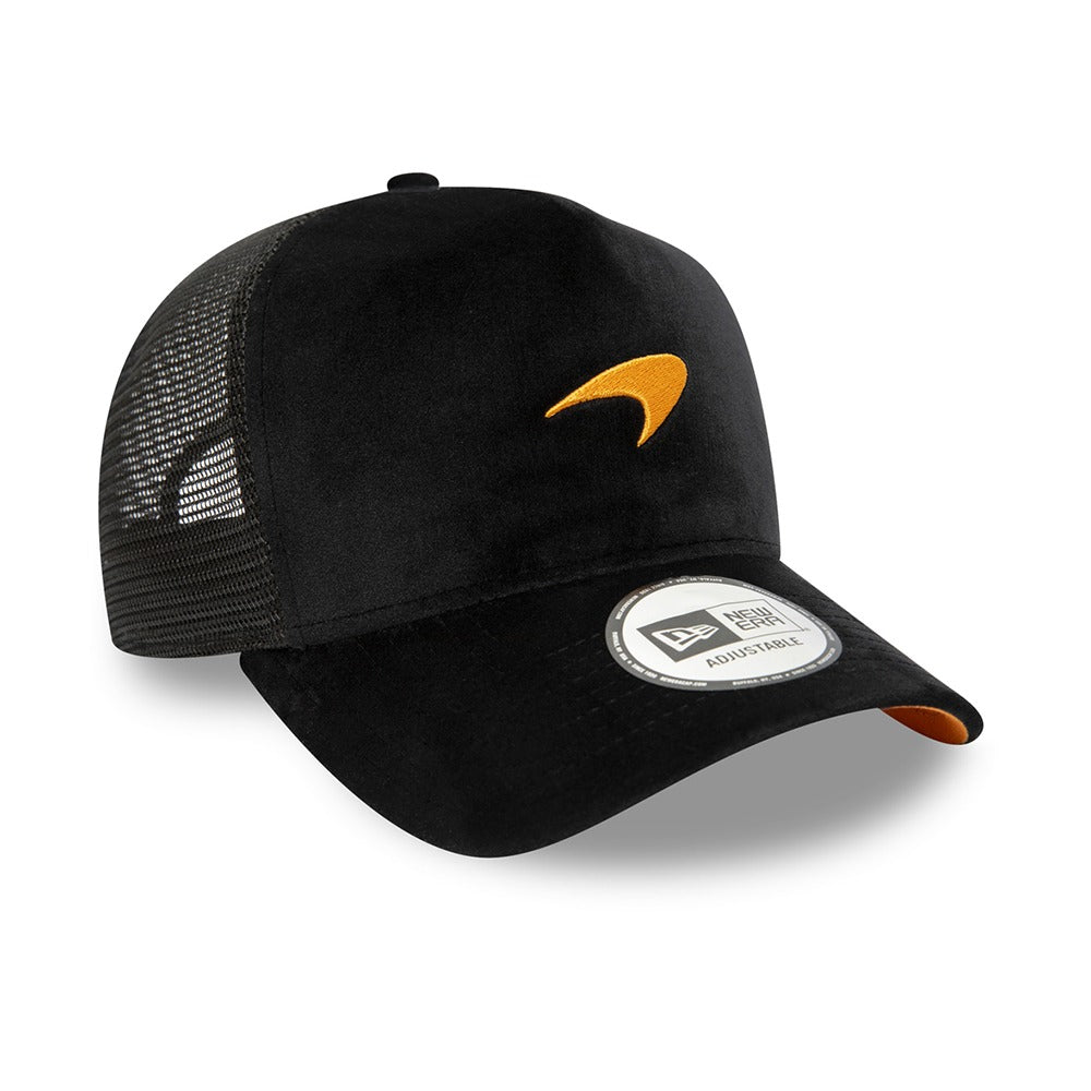 McLaren celebrate 60 years this year and this luxurious velour trucker cap is one way to celebrate with them. Papaya Orange McLaren F1 Team Speedmark logo and matching under visor. Woven loop label on the rear showing 60 counter