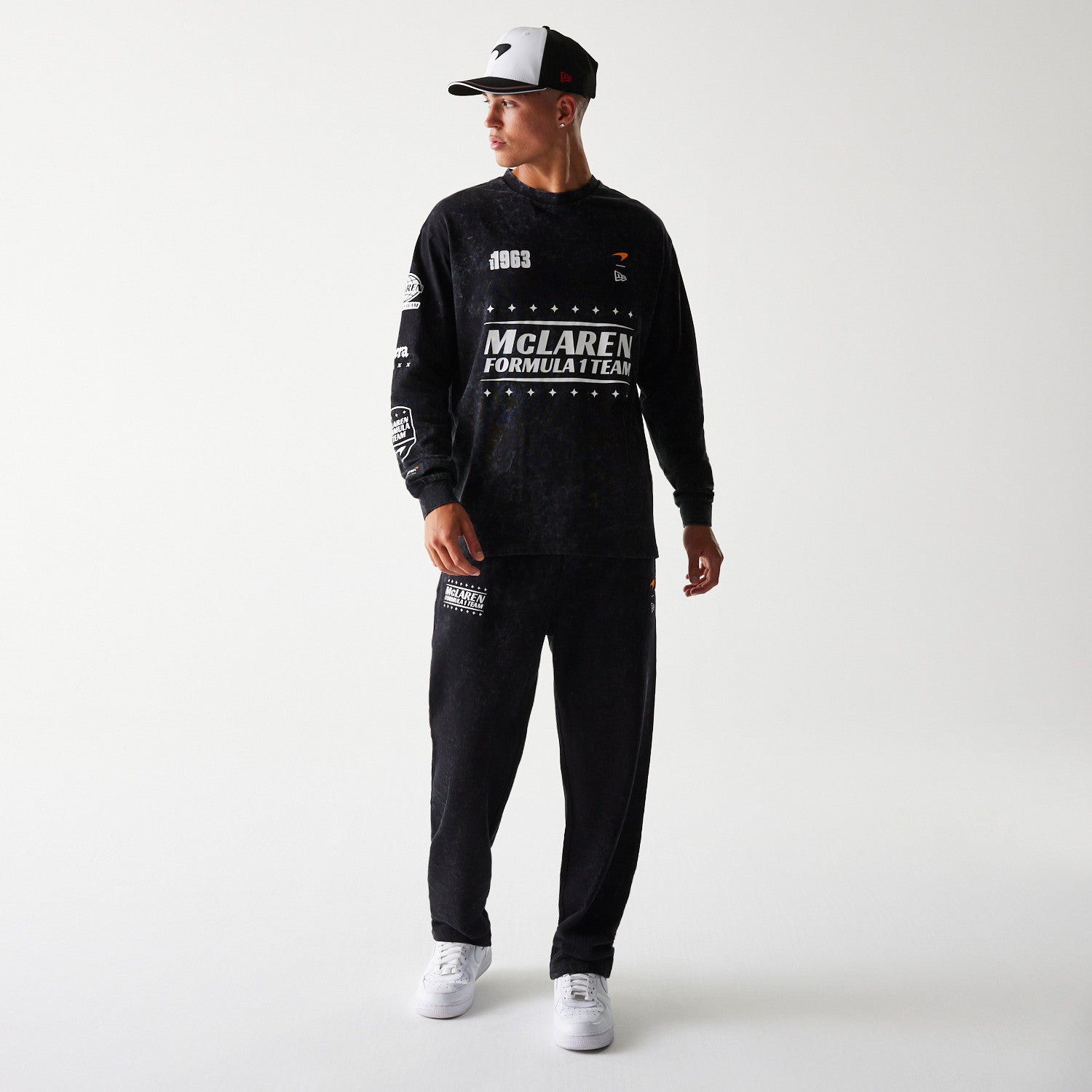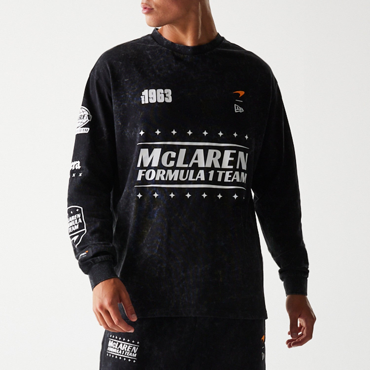 McLaren F1 Team long sleeve racing tee. Casual racing inspired long sleeve tee shirt for McLaren F1 Team fans. Available in black or white