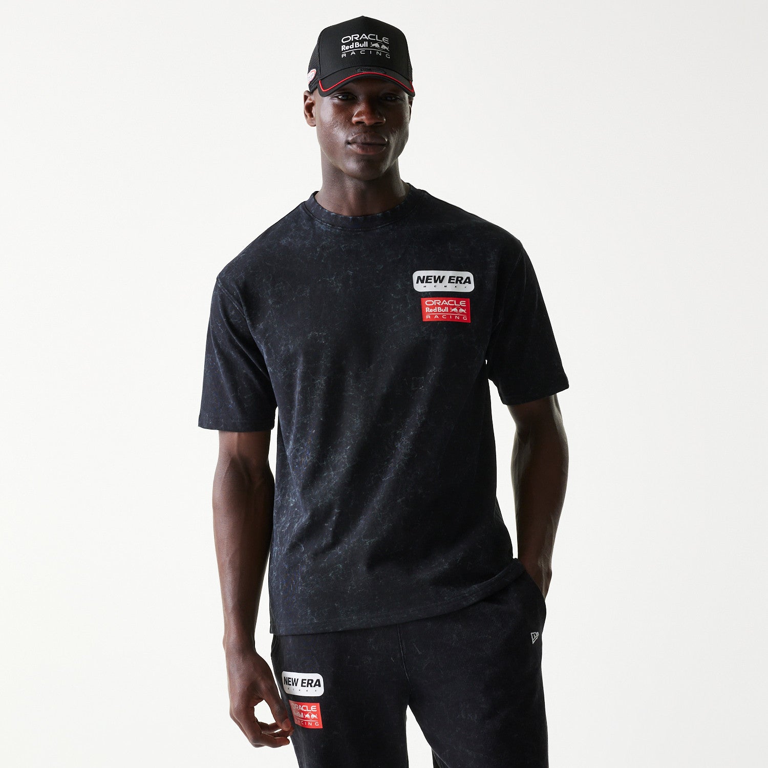 The Red Bull Racing F1 Linear Graphic Oversized Tee Adults - Black delivers bold motorsport style with a relaxed, modern fit.