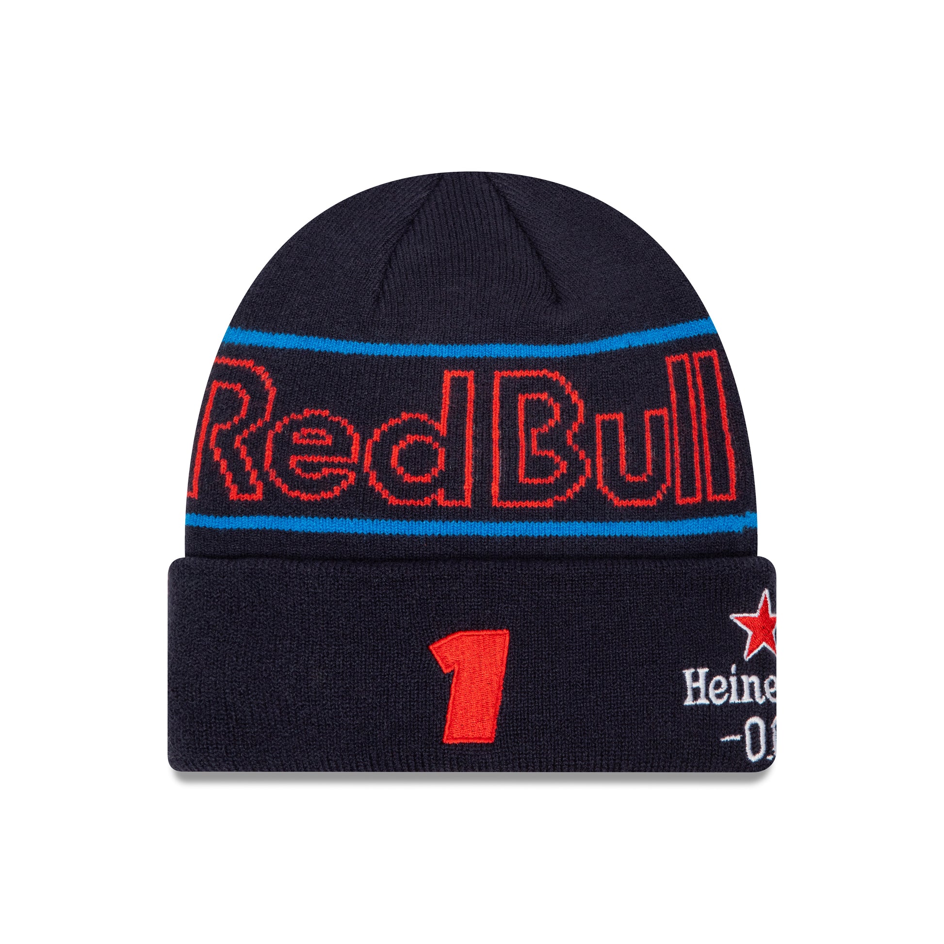 The kids can slip on the beanie worn by Max during the 2024 Formula 1 World Championship. With team and partner logos plus driver number on the back. Made by and featuring the New Era flag.