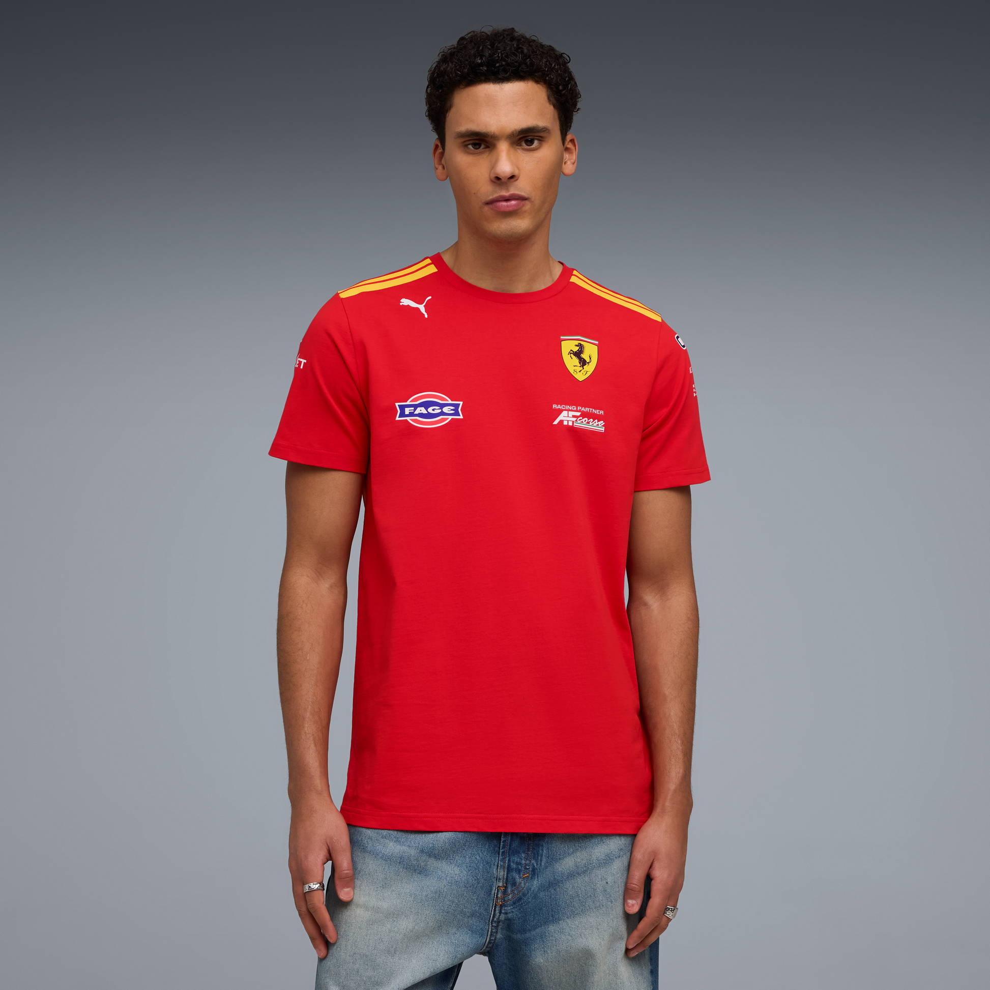 Show your support for the drivers with the Scuderia Ferrari F1 Team 2026 Hypercar Drivers Tee for men in red. This official team T-shirt features a classic crew neck, modern fit, and bold Scuderia Ferrari F1 driver branding, perfect for race days, casual wear, or motorsport-inspired everyday style.