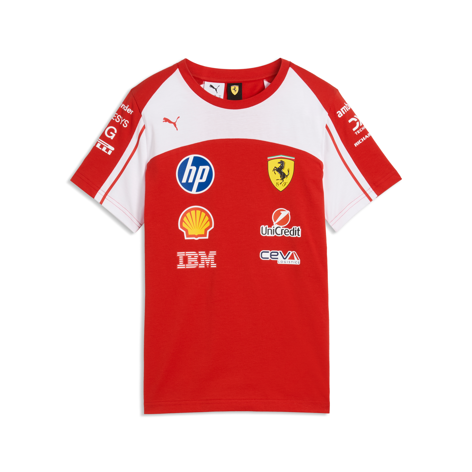Let young fans show their Ferrari pride with the Scuderia Ferrari F1 Team 2026 Tee for kids in red. This official team T-shirt features a classic crew neck, comfortable fit, and Scuderia Ferrari F1 branding, perfect for race days, casual wear, or motorsport-inspired everyday style.