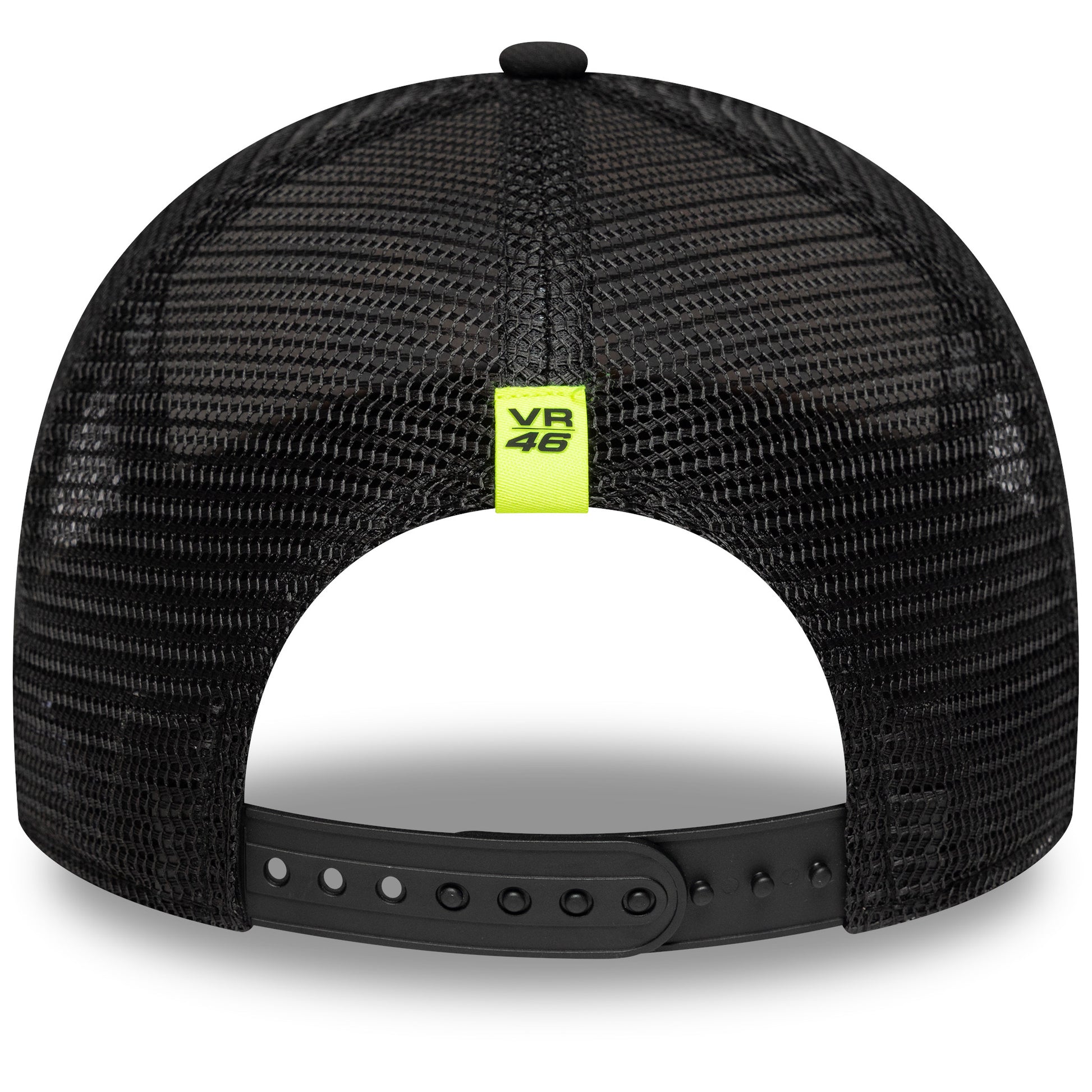 The VR46 Recycled Stripe 9Forty E-Frame Trucker Adjustable Cap combines bold VR46 style with sustainable design.